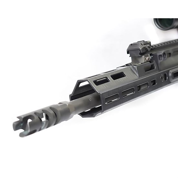 - Ein Drop M-LOK Befestigungspunkt in der 12-Uhr-Position ermöglicht es Schützen, Lichter und Laser anzubringen.