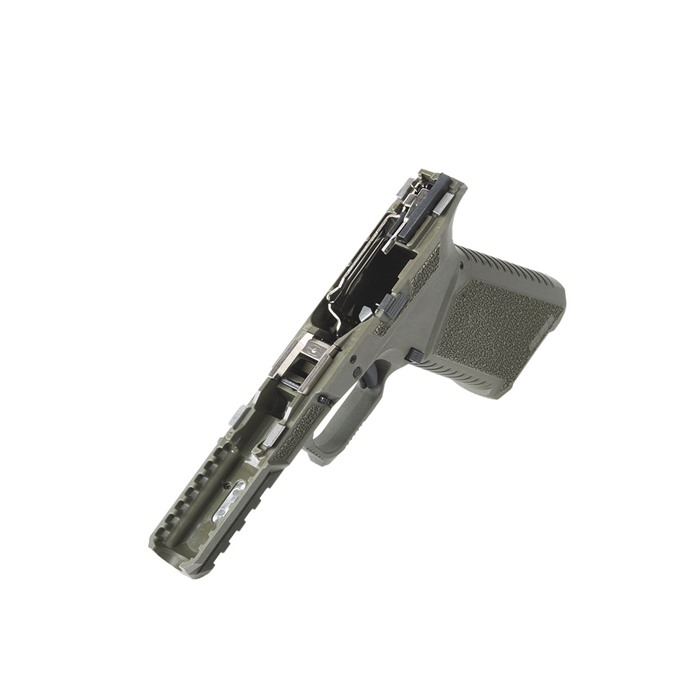 This SCT Manufacturing GLOCK™ Compatible Full Size Assembled Frame is going to change the way you build pistols. It is the only frame at this price point packed with this level of features. This is a serialized frame with shooter-oriented ergonomics. Polished stainless steel over molded rails that are ready to build. They are made with an industry leading proprietary polymer blend and compatible with Glock Gen 3 17,22, and 31 frames. Each frame is assembled by a certified armorer utilizing SCT Manufacturing lower parts kits which have been tested and proven to meet or exceed OEM specifications. The last step of each frame assembly is function testing utilizing a GLOCK™ factory slide checking for safe operation, striker engagement, trigger pull, & trigger reset ensuring the end user is left with a frame that needs nothing but a slide assembly right out of the box! FEATURES: Fully assembled with SCT Gen 3 17 compatible internals. Serrations and index point on trigger guard to help control recoil Serrations on top of beaver tail reduce glare GEN 5 Style Slide lock Flared mag well Thumb Accelerator pad Advanced contour grip with aggressive texturing Picatinny rail (not a Glock® rail) “MIL-STD 1913 Picatinny” High beaver tail with low profile bore axis Grip angle is the same as Glock® Slide stop guard Larger trigger guard for better access with gloves Recessed contoured mag release area for faster mag changes Multi caliber- Compatible with compact 9mm, 40 cal, 357SIG Mag Well compatibility Frame assembly includes: SCT17 polymer frame, electroless nickel locking block, polished trigger assembly with electroless nickel trigger bar and polymer trigger, standard polymer magazine catch, magazine catch spring, steel trigger pin, steel locking block pin, standard slide lock, slide lock coil spring, polymer trigger housing pin, trigger housing with GEN4 style ejector, standard slide stop assembly & polished 5.5 lb. electroless nickel trigger connector.