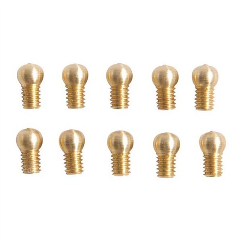 Brownells Shotgun Sight Kit “A” is truly one of the most unusual bargains ever offered a Sporting Goods Store or Professional Gunsmith in a practical, economical assortment of top-quality, replacement shotgun sights. The workmanship is superb, being done on the most modern and up-to-date machinery in the U.S.A. The sight globes are true spheres - not lop-sided as those you have found on many other sights at a higher price. The threads are cut onto the shank, and are clean, sharp and well-machined for the best possible fit. Shanks are threaded right up to the base of the bead so you can set the sight exactly onto the barrel. Your choice of sights in the Kit is extremely wide. There are 2 shank sizes, 3 bead sizes and 2 bead colors, giving you a total of 8 different sights to choose from so you can fit nearly any gun that comes into the shop. The two shank sizes are 3-56 and 6-48. Size 3-56 is one of the most widely used shanks in the industry and will fit most guns having threaded sight holes. The 6-48 shaft was chosen for the alternate size to be used when the original hole must be redrilled and tapped - or where there is no hole at all - because 6-48 is the firearm industry standard screw size, and every gunshop in the country will have the drill and tap on hand to make the new hole. Bead sizes are .067, .130 and .175, (the most popular sizes), giving your customer the choice of small, medium or large beads. In addition, each bead size is available in either Gold color - machined from finest brass; or White color - machined from high tensile aluminum alloy. Neither color will bleed at the heels, wear off with hard use, or chip and peel, as almost all enameled sights eventually do. Brownells Shotgun Sight Kit “A” comes to you very attractively displayed in a clear plastic counter case. Each individual sight number is in its own plainly identified box on a black tray. There are 10 sights of each number, giving you a total of 80 sights in the Kit - 40 Gold and 40 White - a complete inventory of top-quality shotgun sights with an absolute minimum of capital invested. Don’t pass up the opportunity to cash-in on the shotgun sight replacement market. For an unbelievably low investment you can have a complete, correctly balanced and assorted inventory of 80 superb shotgun sights. Don’t let yourself get caught short when you can have them on hand so easily. Order your Brownells Shotgun Sight Kit “A” today! Refill Sights for Kit "A" - Refills for the Shotgun Sight Kit “A” are single or 10-pak of sights of one number.