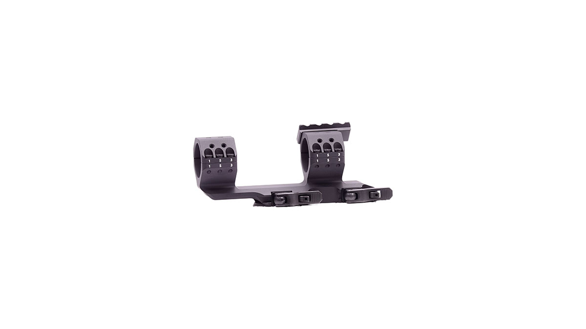 The mount features an optional Picatinny rail attachment that can be secured on one of the clamping rings or mounted at a 45° offset on either side. This flexible Picatinny rail enables the additional use of reflex sights for enhanced adaptability.