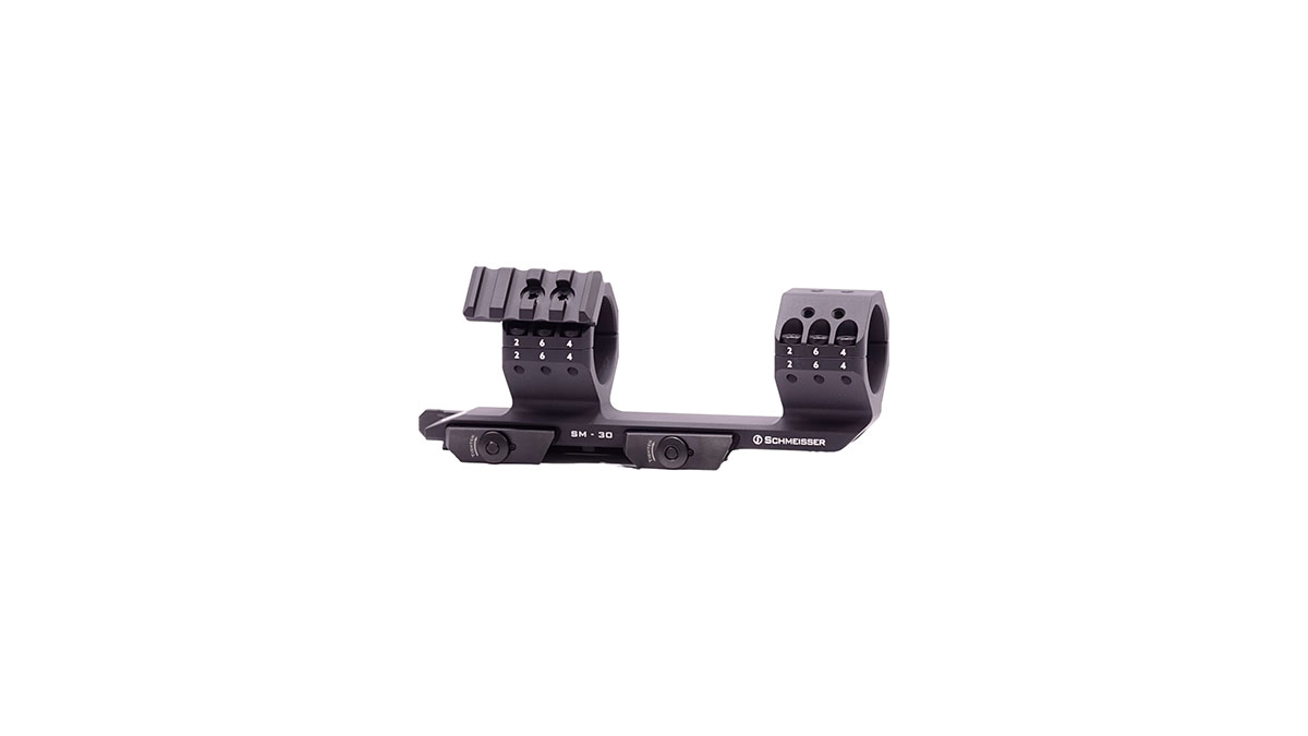 The Schmeisser SM Quick-Detach Offset Mount offers a robust yet versatile connection between your optics and firearm. This one-piece mount is designed for scopes with a 30 mm tube diameter and fits seamlessly onto all Picatinny or Weaver rails. The quick-detach levers allow for rapid installation and removal without the need for tools, ensuring convenience and precision every time.