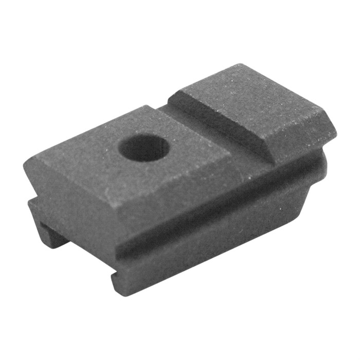 Universeller Schienenadapter: Ein Picatinny-Schienenadapter, der an der Unterseite einer bestehenden Magazinbodenplatte haftet. Bevorzugt, wenn du kein holsterfreundliches Holster hast und mit Holster-Zügen trainieren möchtest.