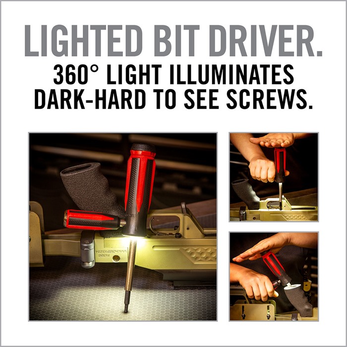 813119014239 SMART-TORQ & DRIVER MASTER SET Das Real Avid Smart-Torq & Driver Master Set ist ein umfassendes Werkzeugset, das für Büchsenmacher und Waffenliebhaber entwickelt wurde und Präzision sowie Vielseitigkeit für die Wartung und Montage von Feuerwaffen bietet. Dieses intelligent gestaltete Master-Set umfasst sowohl den Smart-Torq als auch die Smart Drive™ Büchsenmacher-Treiber, die jeweils ergonomische Griffe für besseren Halt und Komfort während der Anwendung bieten. Hauptmerkmale: Smart-Torq Driver: Ermöglicht präzise Drehmomenteinstellungen mit leicht ablesbaren und einstellbaren 1 in-lb Inkrementen, die von 10 bis 70 in-lbs reichen. Diese Präzision stellt sicher, dass Schrauben und Befestigungen gemäss den richtigen Spezifikationen angezogen werden, um Über- oder Unterdrehung zu vermeiden. Smart Drive™ Driver: Ideal für Anwendungen ohne Drehmoment, verfügt dieser Treiber über eine frei drehende Kappe zum Ausüben zusätzlichen Drucks nach unten und ein integriertes LED-Licht, das eine 360°-Beleuchtung bietet, wodurch die Arbeit in dunklen oder schwer einsehbaren Bereichen erleichtert wird. Force Assist™ Driver: Beide Treiber integrieren sich vollständig mit dem multifunktionalen Force Assist™ Treiber und verbessern die Fähigkeit des Benutzers, während der Anwendung kontrollierte Kraft auszuüben. Umfassendes Bit-Set: Das Master-Set umfasst 83 standardmässige und metrische, schwarz beschichtete Bits. Diese Bits sind hohl geschliffen und quadratisch geschnitten für präzise Passform, was die Kompatibilität mit einer Vielzahl von Schrauben und Befestigungen von Feuerwaffen sicherstellt. Spezifikationen: Drehmomentbereich: 10 bis 70 in-lbs, einstellbar in 1 in-lb Inkrementen. Bit-Anzahl: 83 standardmässige und metrische, schwarz beschichtete Bits. Hersteller-Teilenummer: AVSTNDMS Kundenmeinungen: Kunden schätzen das Real Avid Smart-Torq & Driver Master Set sehr für seine Präzision, Vielseitigkeit und benutzerfreundliches Design. Die Möglichkeit, feine Drehmomentanpassungen in 1 in-lb Inkrementen vorzunehmen, ermöglicht eine sorgfältige Detailarbeit während der Wartung von Feuerwaffen. Kunden schätzen die ergonomischen Griffe, die die Handermüdung bei längerem Gebrauch reduzieren. Die Einbeziehung eines LED-Lichts im Smart Drive™ Treiber wird besonders gelobt, da es schwer einsehbare Bereiche beleuchtet und die Sichtbarkeit und Genauigkeit verbessert. Die umfassende Auswahl von 83 Bits stellt sicher, dass Kunden das richtige Werkzeug für eine Vielzahl von Anwendungen haben, was dieses Master-Set zu einer wertvollen Ergänzung jedes Büchsenmacher-Werkzeugs macht. Die Integration des Real Avid Smart-Torq & Driver Master Set in deine Wartungsroutine für Feuerwaffen stellt sicher, dass du die Präzision und Vielseitigkeit hast, die für eine Vielzahl von Aufgaben erforderlich sind. Sein durchdachtes Design und die umfassenden Funktionen machen es zu einem unverzichtbaren Werkzeug für sowohl professionelle Büchsenmacher als auch Waffenliebhaber, die sich der Wartung der Leistung und Langlebigkeit ihrer Ausrüstung widmen.