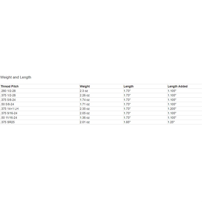 Calibro: 375 Calibro (.375) Filetti: 1/2-28 Finitura: Nero Materiale: Acciaio inox N. prodotto: 430111360