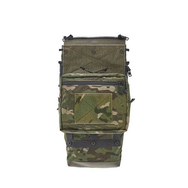 Verwendet die oberen Reissverschlüsse, um das Panel am Plattenbeutel zu befestigen. Dies komprimiert das Panel und ermöglicht eine "leichte" Konfiguration, ideal für Assaulters, die nur eine kleine Hydratationstasche, Slap Charges, Flash Bangs und ein GP-Kit tragen möchten.