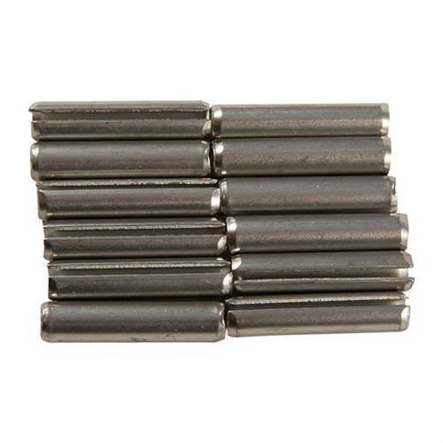 Con l'uso crescente dei roll pins nelle armi, abbiamo cercato un buon assortimento di questi in acciaio inossidabile da offrire. Finalmente l'abbiamo trovato - con 850 pin in 8 diametri e varie lunghezze (vedi sotto). Dovrebbe soddisfare la maggior parte delle esigenze per le armi! Ottimo anche per altri lavori in officina. Crea jigs, attrezzature, o usali per sostituire i taper pins, i dowels, i groove pins, le viti di regolazione, ecc. Non scivoleranno o vibreranno fuori. Facile da usare, poiché non richiedono filettatura o foratura. Possono essere tagliati a qualsiasi lunghezza. Utilizza i Roll Pin Punches per una rimozione positiva e sicura.