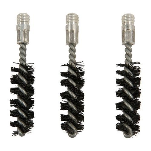 Since darn near as many bore brushes get used in the shop as get sold, we’ve packed these custom-made, top quality brushes in bulk paks to make them more convenient and less expensive. The shank is one-piece, looped and wound (not two, twisted together and chopped off). Nylon Bore Brush - New generation bore cleaners attack copper and bronze-based bullet jacket fouling aggressively and are just as hard on bronze cleaning brushes. Our nylon brushes stand up to these super cleaners and won’t cause accuracy-ruining scratches. One-piece, looped and wound steel shanks SPECS: Available in nylon. Shank: Steel, looped and wound Overall length: 2-7/8” (7.3cm) Threads: 5/16”-27 male