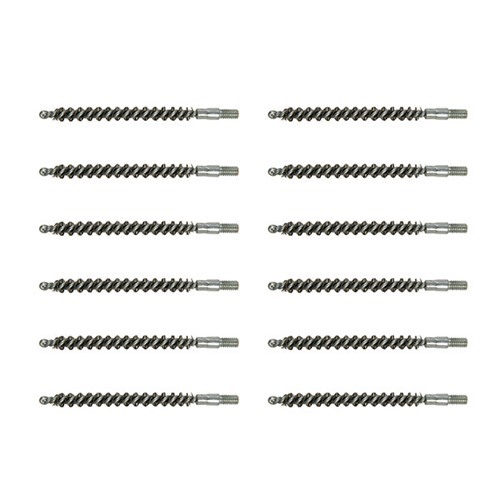 Since darn near as many bore brushes get used in the shop as get sold, we’ve packed these custom-made, top quality brushes in bulk paks to make them more convenient and less expensive. The shank is one-piece, looped and wound (not two, twisted together and chopped off). Stainless Steel Bore Brush - For severely leaded, fouled or rusted bores, the aggressive cleaning action of a stainless steel brush can help get them clean. However, the aggressive action accelerates wear, and regular use can shorten barrel life. SPECS: Bristles: Available in stainless steel. Shank: Steel, looped and wound. Overall Length: 3.27 (8.3cm) Threads: .17 and.20 cal. 5-40 threads, all others 8-32 thread.