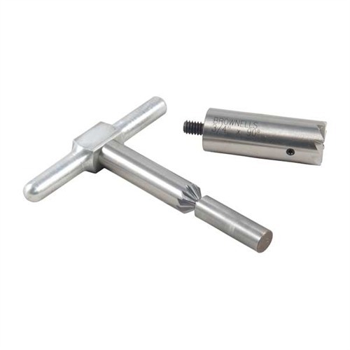 050806017528 Le kit comprend : un outil de coupe de face à 90° pour égaliser un canon après raccourcissement, ou réparer des dommages ; un outil de coupe de chanfrein à 45° pour arrondir les bords des rayures pour une sortie de balle propre ou chanfreiner l'ouverture d'un barillet de revolver pour des recharges rapides ; plus une poignée qui s'adapte à n'importe quel outil de coupe et un pilote en acier. Le pilote interchangeable maintient l'outil de coupe correctement aligné. Achète des pilotes supplémentaires pour utiliser un outil de coupe pour de nombreux calibres différents. Des pilotes pour d'autres calibres sont disponibles séparément.En rupture de stock, délai de livraison d'environ 4-12 semaines depuis l'entrepôt des États-Unis.