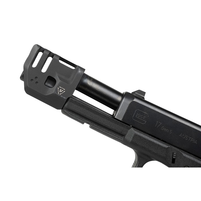 Il Mass Driver Comp di Strike Industries offre un design innovativo per ridurre il rinculo, senza modifiche permanenti all'arma e compatibile con la maggior parte delle fondine.