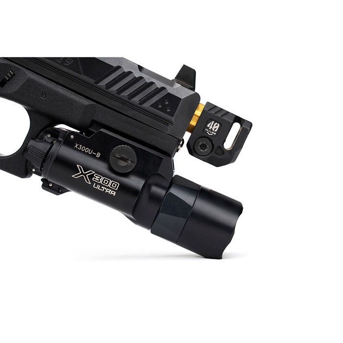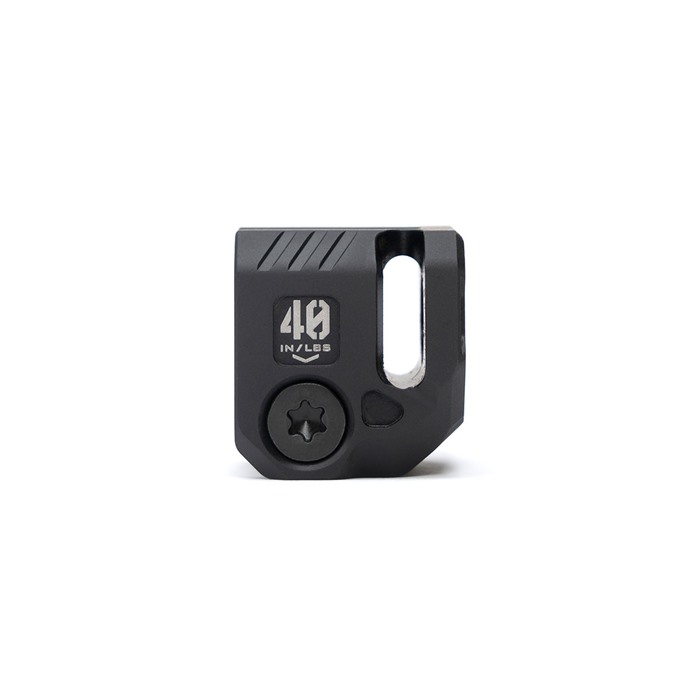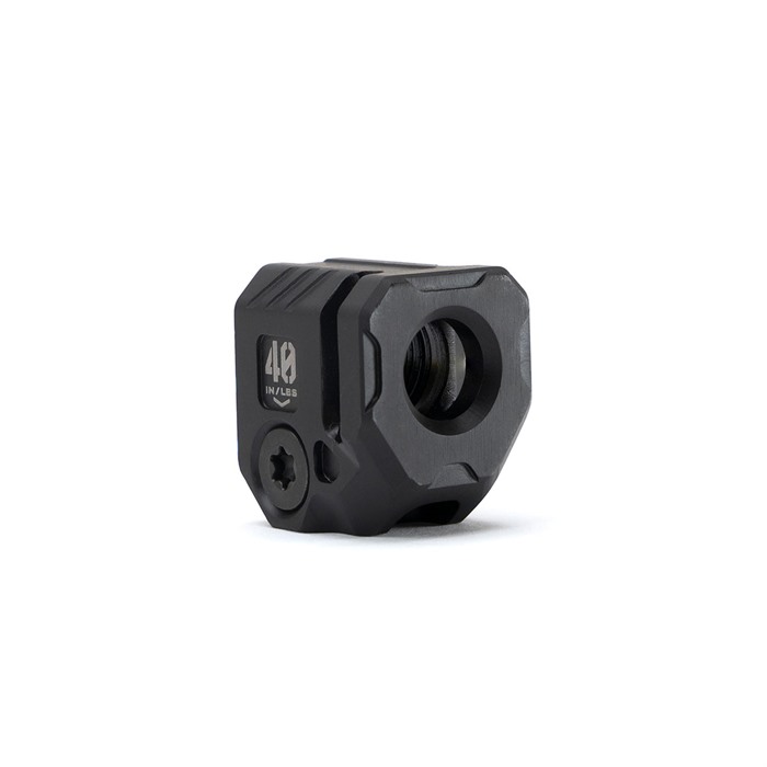 Der QUAD ist ein Pistolenkompensator aus der Strike Micro Threaded Comp (SMTC) Reihe, der mit nahezu jeder Grösse von Schlitzen funktioniert, die einen Gewindelauf mit 1/2"x28 Threads Per Inch (TPI) verwenden. Die breite Frontwand-Baffel leitet das Gas um, um den gefühlten Rückstoss zu mindern und den Mündungsauftrieb zu reduzieren.