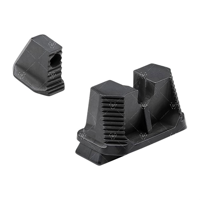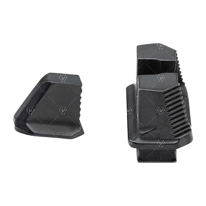 Whether you're running a red-dot sight or a suppressor, you still need a set of irons that allow you to preserve accuracy and precision. These Strike Industries Strike Iron Sights are designed to give you that heighted sight picture while allowing for the use of a mounted optic or silencer. The sights are elevated to ensure absolute co-witnessing with any mounted optic, so you can have two systems working together. Each Strike Industries Strike Iron Sights are designed to provide natural light on either side of the front blade for greater focus and accuracy. The U-notch rear sight makes it easy and intuitive to obtain a sight picture, and the stepped design of the rear edge on both sights reduces glare. The sights are made from SUS630 hardened stainless steel, and the front sight is left blank so users can add the paint they need for improved focus. The rear sight features a vertical line that catches light and helps in aiming. These Strike Industries Strike Iron Standard Sights are designed to fit most popular Glock models, including the G17, G17L, G119, G22, G23, G24, G25 and G26.