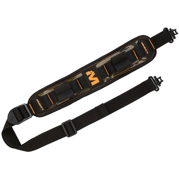 MUDDY SUMMIT RIDGE ?FLEXIBLE COMFORT SLING? This sling is constructed from soft, flexible closed-cell neoprene with Flex Stretch backing, offering both comfort and durability. It significantly reduces the weight felt, making it easier to carry for extended periods. Equipped with an Anti-slip Gripper, it stays secure over rough terrain, providing reliable support. The adjustable sling length ensures a customized fit, while built-in shell holders add convenient storage. Strong metal quick-detach swivels are included for added durability and ease of use. FEATURES: Dimensions: 16.1in L x 3in W x 2in H Reduces the weight felt on your shoulder, making it easier for extended hunts Anti-slip Gripper to stay secure Adjustable sling length for a perfect fit Shell holders Strong metal quick-detach swivels