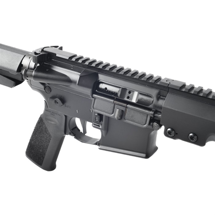 Super Duty MOD1 Pistol The Super Duty Mod1 Pistol improves upon the renowned Geissele Super Duty with the addition of a HUXWRX Flash Hider-QD 556 suppressor-ready muzzle device, an updated MK16 Super Modular Rail with press-fit stainless steel Quick Disconnect (QD) inserts, and an A17 Grip that presents a more ergonomic grip angle. The SD Mod1 updates several key components that ensure this high-end firearm will continue to offer the user unmatched accuracy, comfort, and performance. Geissele provides the latest in weapon technology available. This pistol chambered in 5.56mm features a nanoweapon-coated HUXWRX Flash Hider-QD muzzle device mounted to an in-house Manganese Phosphate coated, Cold Hammer Forged, Chrome Lined, 1-7 twist barrel. Geissele barrels are High-Pressure Tested (HPT) and Magnetic Particle Inspected (MPI). The Geissele length gas system and Geissele Super Compact Gas Block (with bomb-proof installation) ensure reliability and optimal performance in extreme conditions and heavy use. At your fingertip and purpose-built for precision is the SSA-X with Lightning Bow® trigger. The Nanocoated, two-stage trigger features a wide-body and bow shape that finds the perfect balance between a classic M4 trigger and a flat-body trigger. At the heart of this rifle is the Geissele Reliability Enhanced Bolt Carrier Group (BCG). Their Nanoweapon-coated carrier features a properly torqued and staked, Chrome Lined, Nanocoated gas key. The Cam Pin is machined from advanced, tool steel known as H13 which is also coated with Nanoweapon for maximum corrosion and wear resistance. The Reliability Enhanced Bolt Carrier Group features extended upper rails, providing greater stability and dramatically increasing feeding reliability. The Reliability Enhanced Bolt Carrier Group comes with the Geissele Stressproof Bolt. Made from Carpenter 158+, directly developed with Carpenter Steel metallurgists to create a material that is cleaner and has fewer impurities. This makes our Stressproof bolt stronger and more fatigue-resistant. The Geissele Stressproof bolt is also forged, not machined from barstock. This allows us to optimize the grain structure of the steel to yield a bolt capable of 5 times the life of a mil-spec bolt. Each bolt is rigorously inspected, high-pressure tested, mag particle inspected and Nanoweapon coated. The Super Duty lower is precision machined from 7075-T6 aluminum and features Geissele’s Ultra Duty Lower Parts Kit featuring our Ambidextrous Super Configurable safety and Ultra Precision trigger guard. A high-quality mil-spec Geissele Buffer Tube with a Super-42 in H3 buffer ensures this rifle is properly tuned out of the box. A Geissele Quick Disconnect (QD) Sling Mount Endplate allows for fast interfacing of slings quipped with QD pushbutton mounts to the lower receiver. This rugged and reliable attachment point is machined from Stainless Steel that is finished in Black Nitride and staked per MIL STD. Rounding up the package is a MK16 Super Modular Rail, that mates to the Super Duty Upper Receiver via a center aligning tab that removes any chance of rail rotation. The MK16 family of rails is renowned by operators for their performance and comfort. An Airborne Charging Handle ensures smooth and reliable operation. SPECIFICATIONS: CALIBER: 5.56MM COLOR: Black or DDC LOWER RECEIVER: Super Duty Lower Mil-Spec UPPER RECEIVER: Super Duty M4 Upper BCG: Reliability Enhanced Bolt Carrier Group BOLT: Geissele Stressproof Bolt RAIL: SMR MK16 w/ Geissele Center Tab TRIGGER: SSA-E X w/ Lightning Bow® BARREL: CHF, Chrome Lined, 1-7 Twist (Pin & Weld) - Geissele or Heavy Profile GAS BLOCK: Super Compact Gas Block CHARGING HANDLE: Airborne Charging Handle MUZZLE: HUXWRX Flash Hider- QD 556 LOWER PARTS KIT: Ultra Duty Lower Parts Kit BUFFER: 7075-T6 Smooth Pistol Buffer w/ QD Endplate BUFFER ASSEMBLY: Super-42 w/ H3 Buffer GRIP: Geissele A17