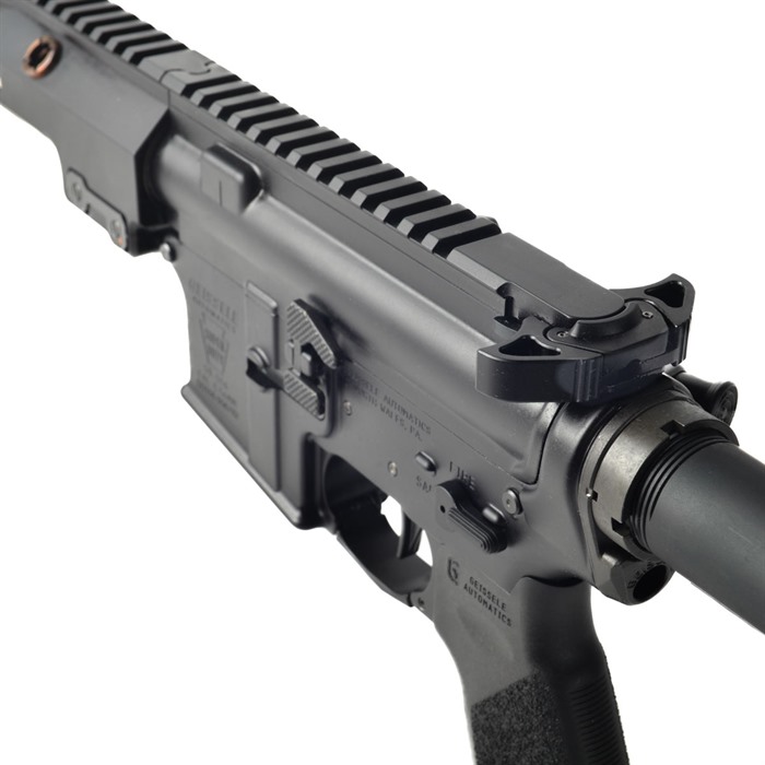 Die Super Duty MOD1 Pistole verbessert die renommierte Geissele Super Duty mit der Hinzufügung eines HUXWRX Flash Hider-QD, einem für Suppressor geeigneten Mündungsgerät, einem aktualisierten MK16 Super Modular Rail mit press-fit Edelstahl Quick Disconnect (QD) Einsätzen und einem A17 Griff, der einen ergonomischeren Griffwinkel bietet.