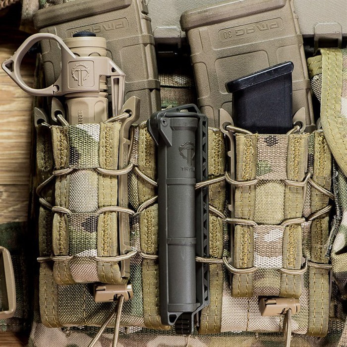 - Kann an PALS, MOLLE, Webbing und Riemen montiert werden