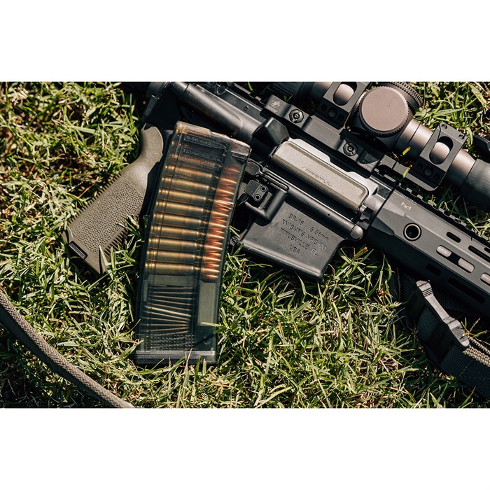 Il caricatore TMAG AR/M4 GEN M3 è un caricatore altamente affidabile e traslucido, progettato per armi compatibili STANAG in calibro 5.56x45 NATO/.223 Remington. Realizzato in materiale traslucido con una tonalità ODG/Su smoke, offre ai tiratori la visibilità necessaria per verificare i vari tipi di munizioni e il conteggio dei colpi.