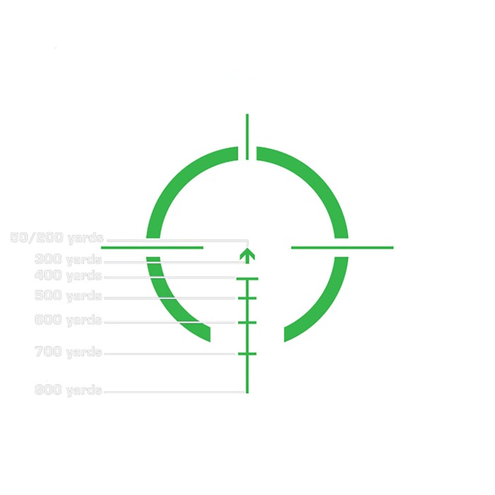 - Réticule Trident : Idéal pour une acquisition rapide à courte distance tout en permettant des engagements à moyenne portée avec un BDC 5.56/.308 ou une échelle MOA.