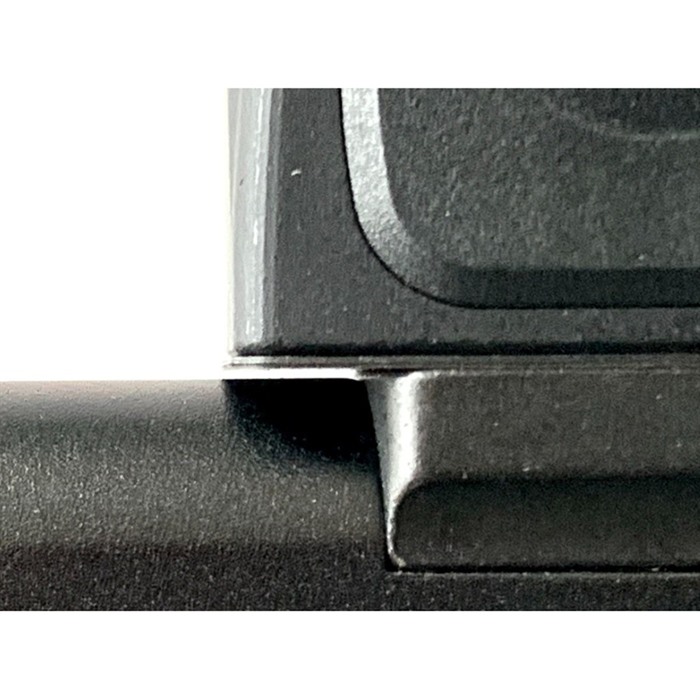 Das RMRcc hat ein eigenes Fussabdruck-Design. Die zwei vorderen Lug-Löcher sind verschwunden und wurden durch zwei grössere, gewindete Stifte (Bossen) ersetzt, durch die die Schrauben für die Montageplatte installiert werden. Die Schrauben sind ebenfalls signifikant verstärkt. Obwohl die OPF-G, RMRcc Konstruktion das Visier auf der Platte immobil hält, sind die grösseren und stärkeren Schrauben nicht so wichtig, aber wir begrüssen Schrauben, die weniger wahrscheinlich ausreissen.