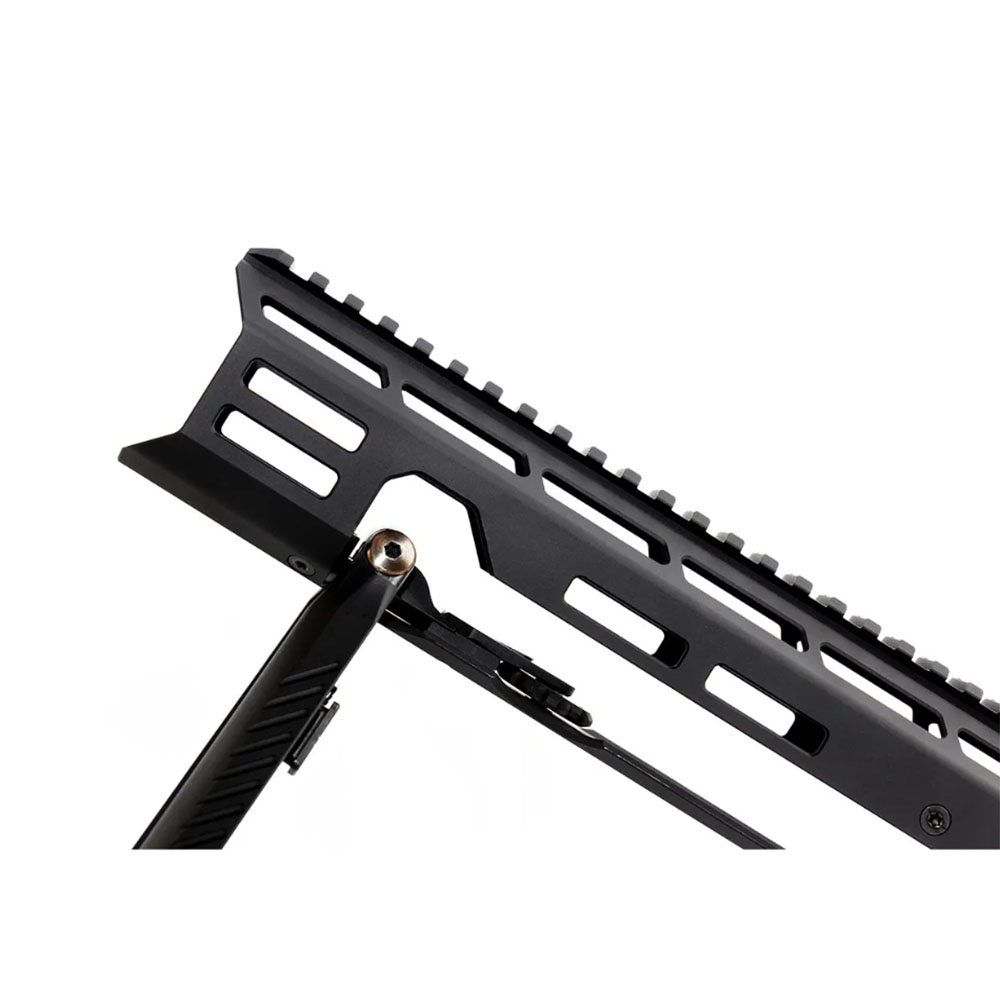 Wenn die Bipod nicht im Einsatz ist, lassen sich die Beine der BLK LBL Bipod einfach nach hinten zusammenfalten, sodass sie bündig mit dem Handgriff abschliessen. Das bedeutet, dass sie beim Bewegen nicht an Kleidung, Ausrüstung oder Ästen hängen bleiben und beim Schiessen im Stehen, von einer Barrikade oder sogar beim Lagern deines Gewehrs nicht stören.