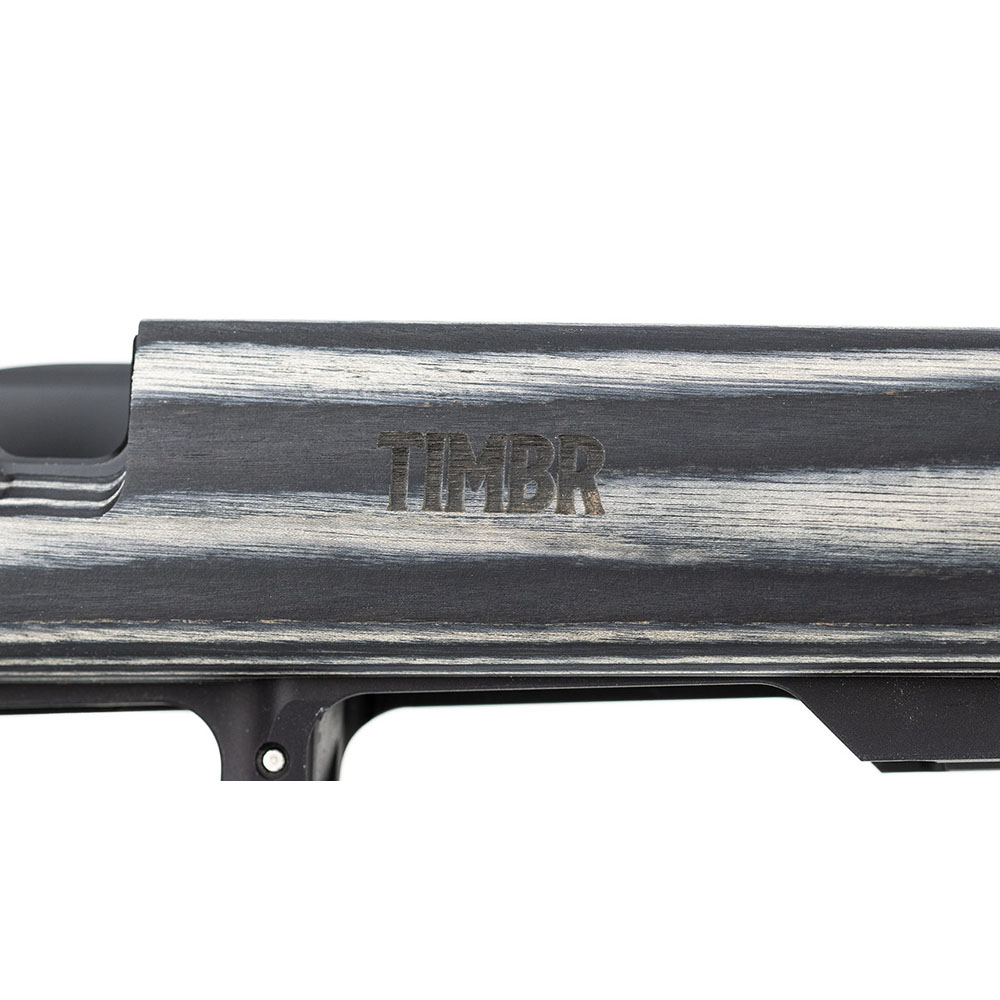 Le MDT Timbr Frontier a été conçu pour offrir l'apparence et la sensation d'une crosse traditionnelle tout en intégrant la précision et la répétabilité du lit moderne V-Block d'un châssis. La crosse et le garde-main sont fabriqués en contreplaqué de bouleau, ce qui donne à chaque crosse un grain de bois unique et une sensation chaleureuse. Ils sont ensuite finis avec un vernis de haute qualité et attachés au micro châssis en aluminium et au métal inférieur.