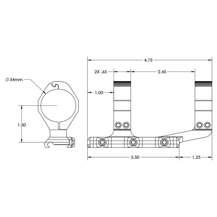 Caratterizzato da un design rigido e leggero, il montaggio ottico ultraleggero da 34 mm presenta un anello posteriore spostato in avanti di 1", garantendo una migliore distanza degli occhi. Questo montaggio è progettato per adattarsi a ricevitori superiori di tipo AR con guide Picatinny Mil-Spec 1913 e dispone di una chiave a croce che offre un'eccellente protezione contro il rinculo.