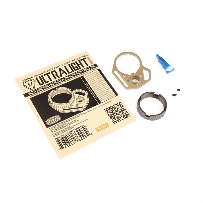 Le Strike Industries Ultralight Multi-Function End Plate et le Anti-Rotation Castle Nut sont conçus pour mettre à jour et améliorer le système souvent négligé de l'écrou de château et de la plaque de fin. Maintenant disponible en version ultralégère en aluminium 7075-T6 anodisé avec des options de couleur pour personnaliser le look de ton AR.