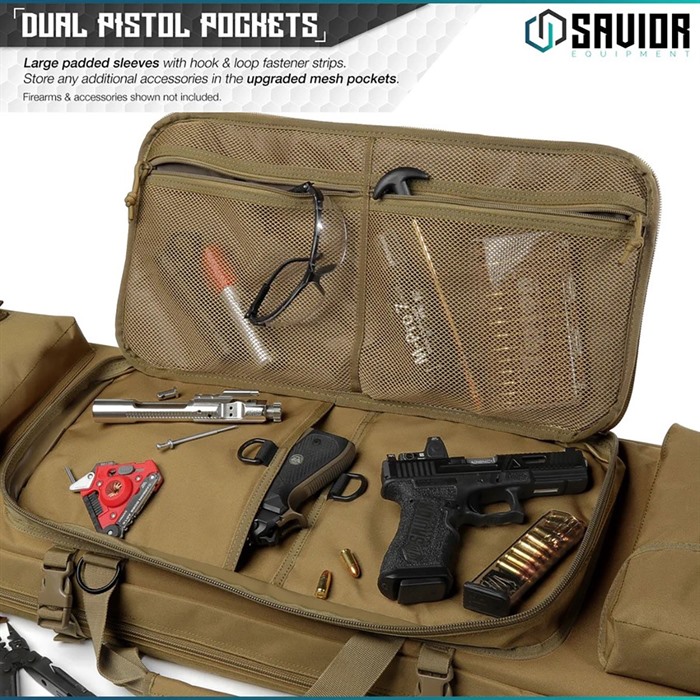 - Nutze die gepolsterten Pistolenfächer für deine Handfeuerwaffen.