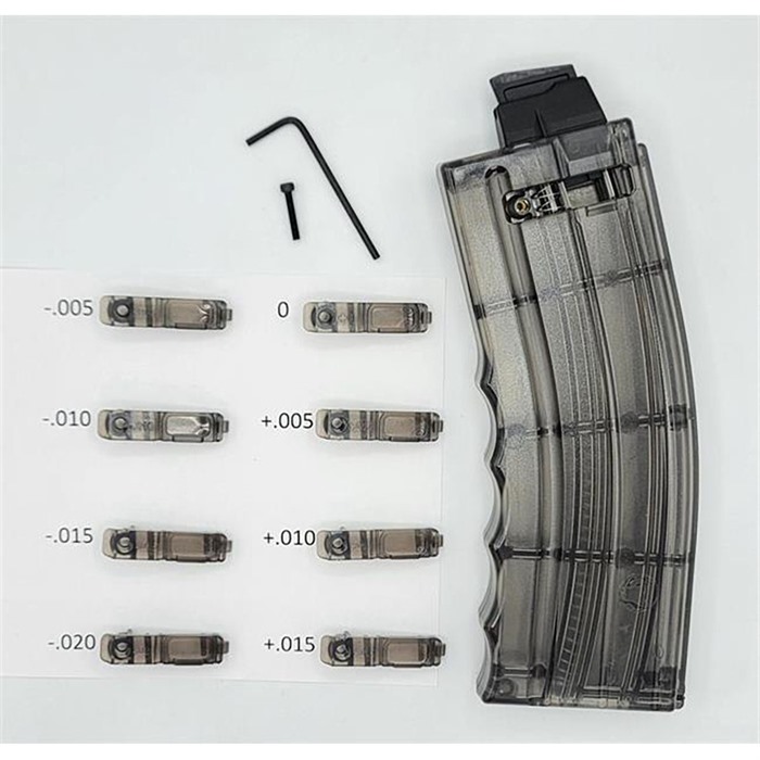 V208 AR-15 22 LONG RIFLE MAGAZINE Avec l'expansion continue du marché des armes et les nombreuses plateformes à percussion annulaire disponibles, Black Dog Machine LLC est conscient de la nécessité de fournir un chargeur qui couvre presque toutes ces options. Ils ont amélioré leur produit en développant un nouveau chargeur plus polyvalent capable de s'adapter aux légères variations de production des kits à percussion annulaire et des plateformes dédiées. Ils ont réalisé cela en créant un chargeur avec un verrou ajustable qu'ils appellent la Version 208. V208 (208 est leur code régional de l'Idaho) Le nouveau chargeur dispose de huit inserts à changement rapide à l'endroit où se trouve le verrou. En utilisant la clé Allen fournie de 3/32, il suffit de retirer une vis pour changer les inserts vers le haut ou vers le bas par incréments de 0,005 pour ajuster la hauteur d'alimentation souhaitée pour le kit ou l'arme à feu individuelle. Ils ont également ajouté de nouvelles fonctionnalités comme les rainures pour les doigts à l'avant. Par commodité, l'ajustabilité est protégée par leur brevet américain ainsi que de nombreuses nouvelles caractéristiques. COMMENT ÇA MARCHE : La plaque de verrouillage d'usine est "0". Si cette mesure de verrouillage ne vous convient pas, choisissez soit + (verrouillage supérieur) soit – (verrouillage inférieur) pour personnaliser le réglage de verrouillage pour votre fusil/pistolet. TAILLES D'INSERT : Standard- 0 Verrouillage supérieur : +0,005 +0,010 +0,015 Verrouillage inférieur : -0,005 -0,010 -0,015 -0,020 ***Vis fileté et laiton juste assez pour les connecter, pas besoin de serrer*** PN : V208-AR22MAG – (COULEUR FUMÉE OU VERT NITRO) CHARGEUR DE 25 ROUNDS. INCLUS : 1 VIS SUPPLÉMENTAIRE, 1 CLÉ ALLEN. Unités de conversion, fusils et uppers dédiés connus compatibles Bear Creek Arsenal .22 LR Ciener/Atchisson Modèle 1 Ventes Kriss 22LR Spikes Tactical Tactical Solutions Target Master SIG P522 SWAT Kel-Tec PLR22 Chiappa M4-22 Sig Sauer 522 WMD Guns LLC 22LR Fusil, MK4 Banshee .22LR NFA Bushmaster kit combo Nordic Components DE NOMBREUX AUTRES UNITÉS DE CONVERSION AU STYLE ATCHISSON/CIENER, UPPERS & FUSILS QUI NE SONT PEUT-ÊTRE PAS LISTÉS Ne fonctionnera pas avec : Tippman Arms M4 .22 Magnum .22 S&W M&P 15 .22 H&K 416.22/Umarex HK-416D Pistolet Colt/Umarex M-4 Carabine M-4 OPS, Fusil M-16 Beretta ARX160 .22LR M-16 SPR, Rock River Kriss et d'autres modèles qui peuvent ne pas être listés.