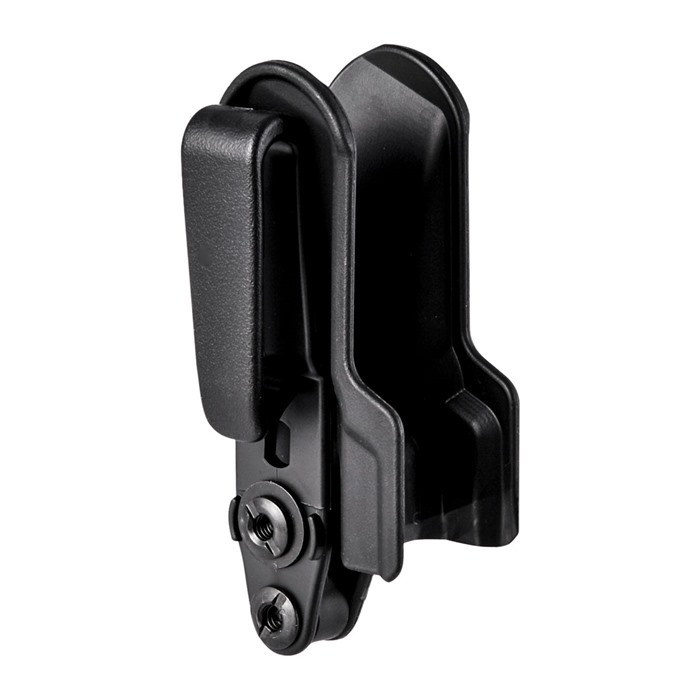 - Rimozione facile: L'holster può essere rimosso afferrando il naso dell'holster e facendolo leva. Questo consente il dispiegamento dell'arma con una sola mano anche se il tether o il punto di attacco non riescono a rimuovere l'holster.