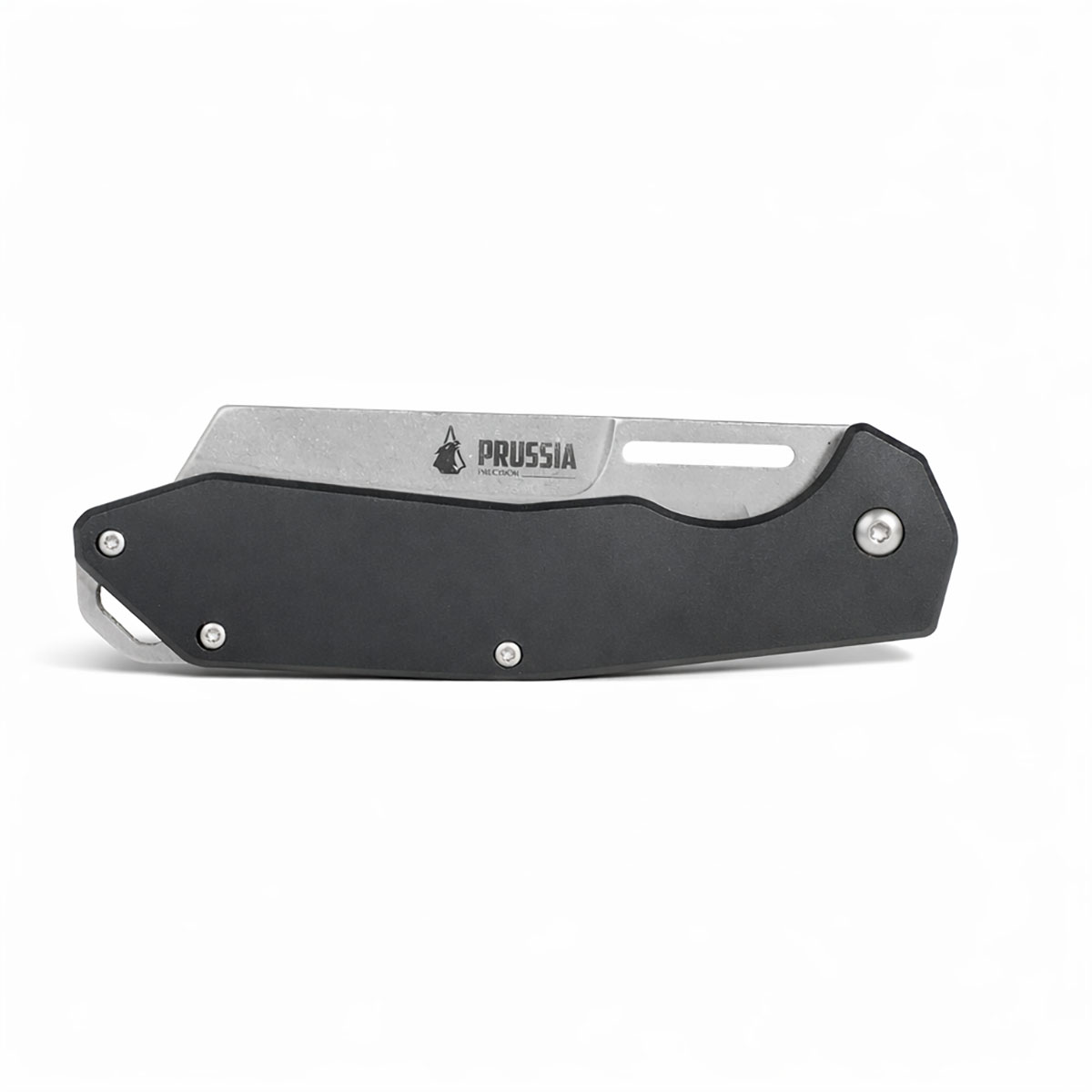 726529840827 The Prussia Precision Kompaktklinge 1 is a sleek and dependable folding knife designed for everyday carry. Built with clean lines and practical performance in mind, it delivers a compact cutting tool that fits effortlessly into any EDC setup. At its core is a 9.5 cm blade made from 3Cr13 stainless steel, offering solid corrosion resistance, easy maintenance, and reliable cutting performance for daily tasks. The stonewash finish enhances durability while helping conceal minor wear from regular use, maintaining a clean, rugged look over time. The knife features a smooth opening action and a proven liner lock mechanism, ensuring secure blade retention during use. Its lightweight aluminum handle provides strength without unnecessary bulk, making it comfortable to carry in urban environments, outdoor settings, or professional applications. Constructed from durable materials and engineered for practical reliability, the Kompaktklinge 1 is built for users who value functionality, simplicity, and dependable everyday performance.Lieferzeit ca. 15-20 Tage aus dem Lager Europa.
