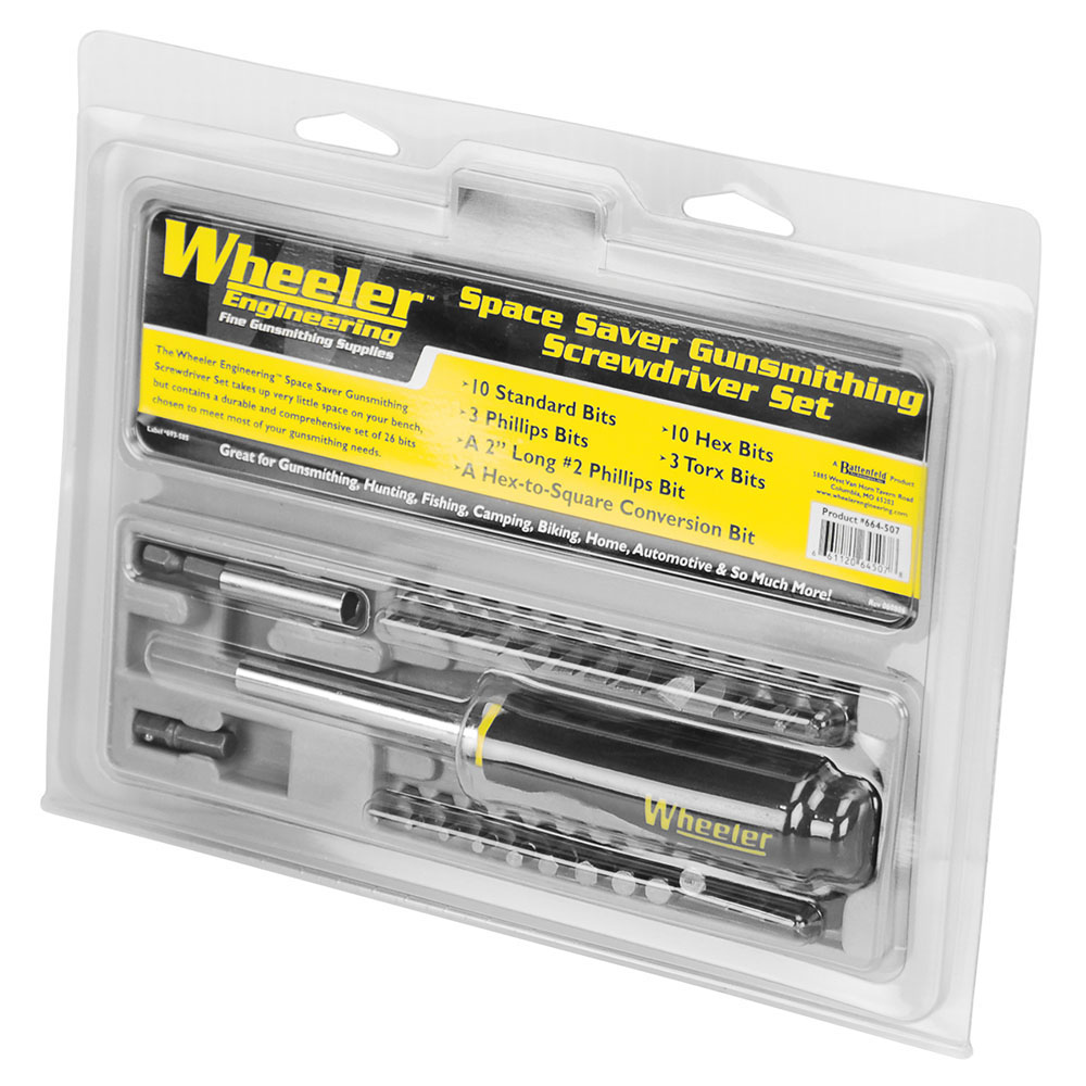 Le Wheeler Space-Saver Screwdriver Set est moins de la moitié de la taille des ensembles de tournevis pour armuriers comparables, mais il contient un ensemble durable et complet de 26 embouts choisis pour répondre à la plupart de tes besoins en armurerie. Il est également de la taille parfaite pour l'inclure dans tes voyages au stand de tir et sur le terrain.
