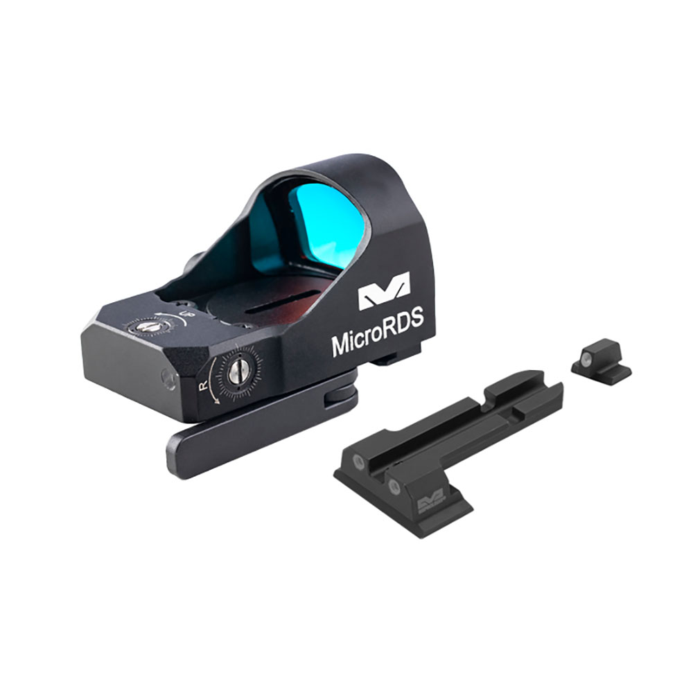 Il Mepro microRDS porta l'acquisizione rapida del bersaglio di un'ottica a punto rosso di dimensioni complete a un mirino per pistola compatto. Dotato di un kit adattatore brevettato a sgancio rapido (QD) che si monta facilmente utilizzando la slitta di montaggio del mirino posteriore esistente della pistola; non è necessario forare, filettare o contattare un armaiolo.